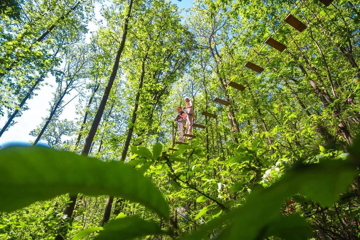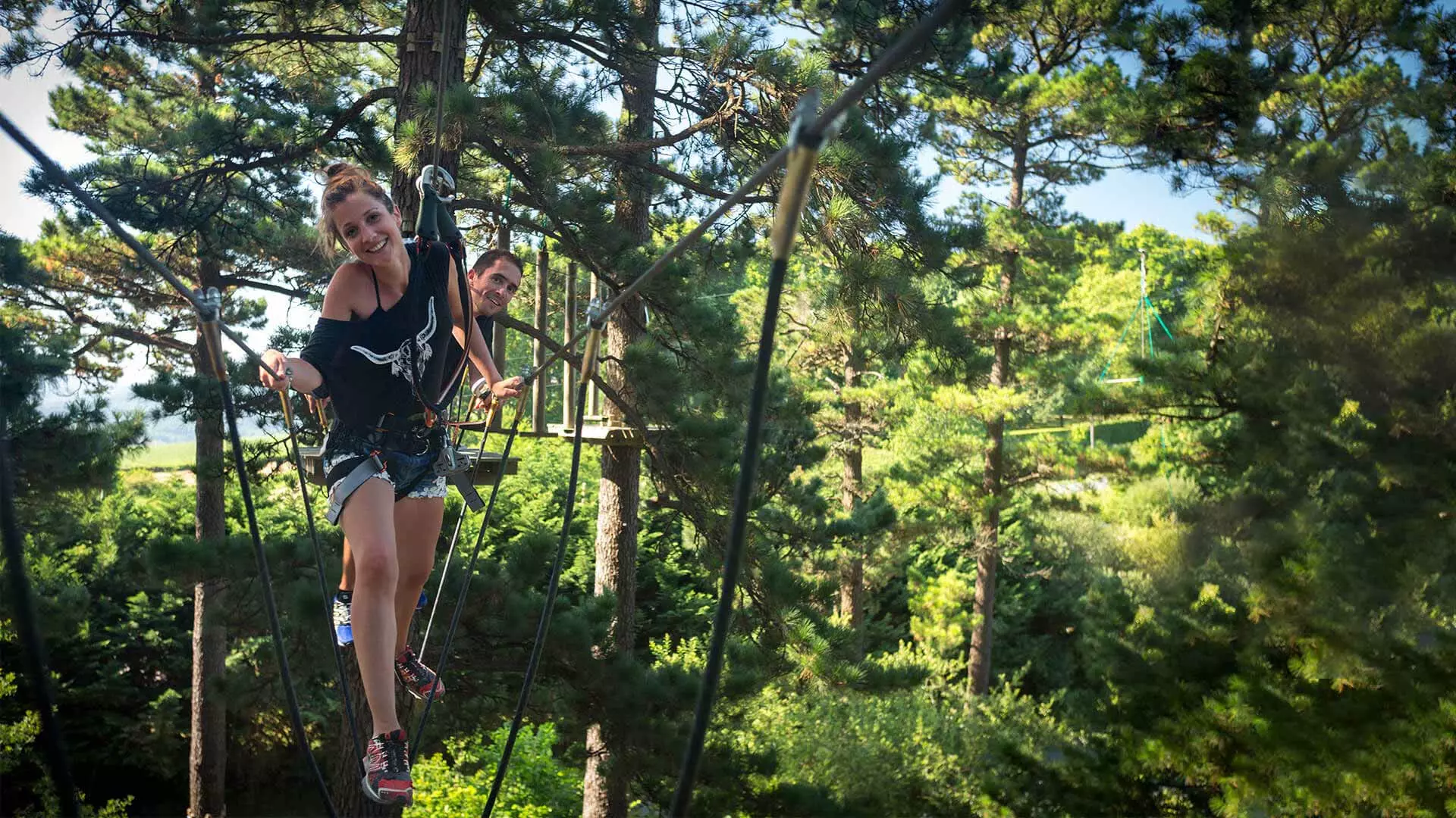 Dans notre parc accrobranche, vous serez guidés et encadrés, en toute sécurité, par notre équipe de professionnels diplômés et évoluerez sur plus de 135 ateliers répartis sur 8 niveaux de difficultés. Un parcours sans équipement, de plus de 20 ateliers, accueillera les enfants à partir de l’âge de 3 ans.